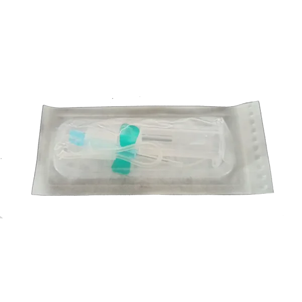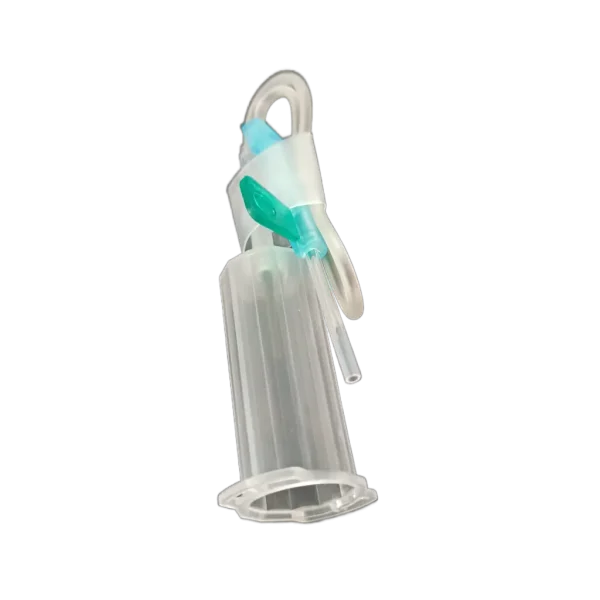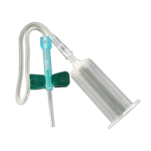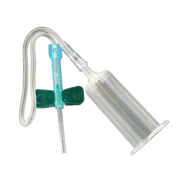 Ac recoltare sange tip fluturas cu adaptor luer lock G21 (0,80mmx35mm) verde, siguranță ac, holder pentru ac și vacutainer din plastic transparent de calitate înaltă. Steril. Marcaj CE.
