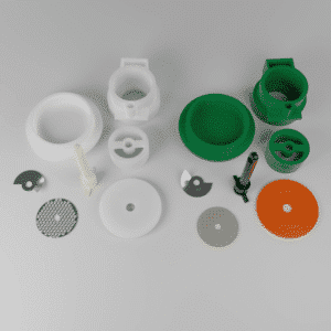 Grilă internă din polimer plastic, formată din 100 de găuri cu micro lamele de secțiune piramidală pe o bază pătrată, concepută pentru a tăia țesuturile cu o viabilitate celulară de 93%.